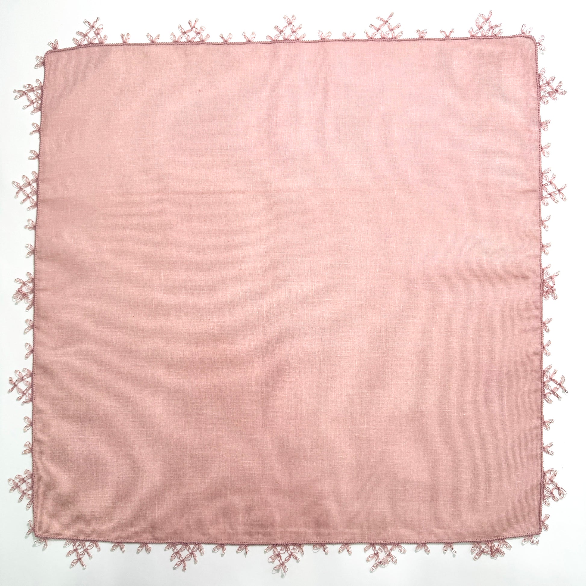 Crafted from fine linen, this collection celebrates the artistry of traditional Anatolian needle lace, delicately accented with transparent beads for a luminous sparkle. Each piece is handcrafted by skilled women artisans, merging heritage techniques with modern sensibility. This pink napkin pairs beautifully with any tablecloth, while its unique craftsmanship elevates your table with timeless sophistication.